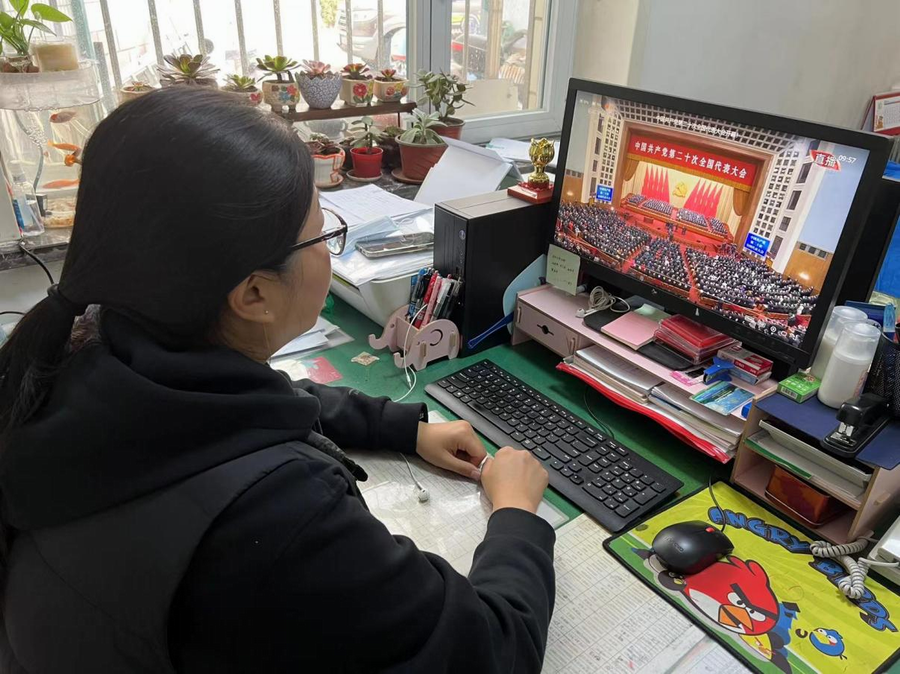 我和家人一起共同观看了党的二十大开幕式的现场直播,认真聆听大会工作报告:党的成就来之不易,作为一名基层妇委会工作者,我将在学习宣传贯彻党的二十大精神上自觉走在前、作表率,把党的二十大精神与实际工作相结合,切实把学习成效转化为推动工作的务实行动,着力打造业务精、作风好的优良素质,用星火般的光和热,为民族复兴、国家发展献出自己微薄的力量。