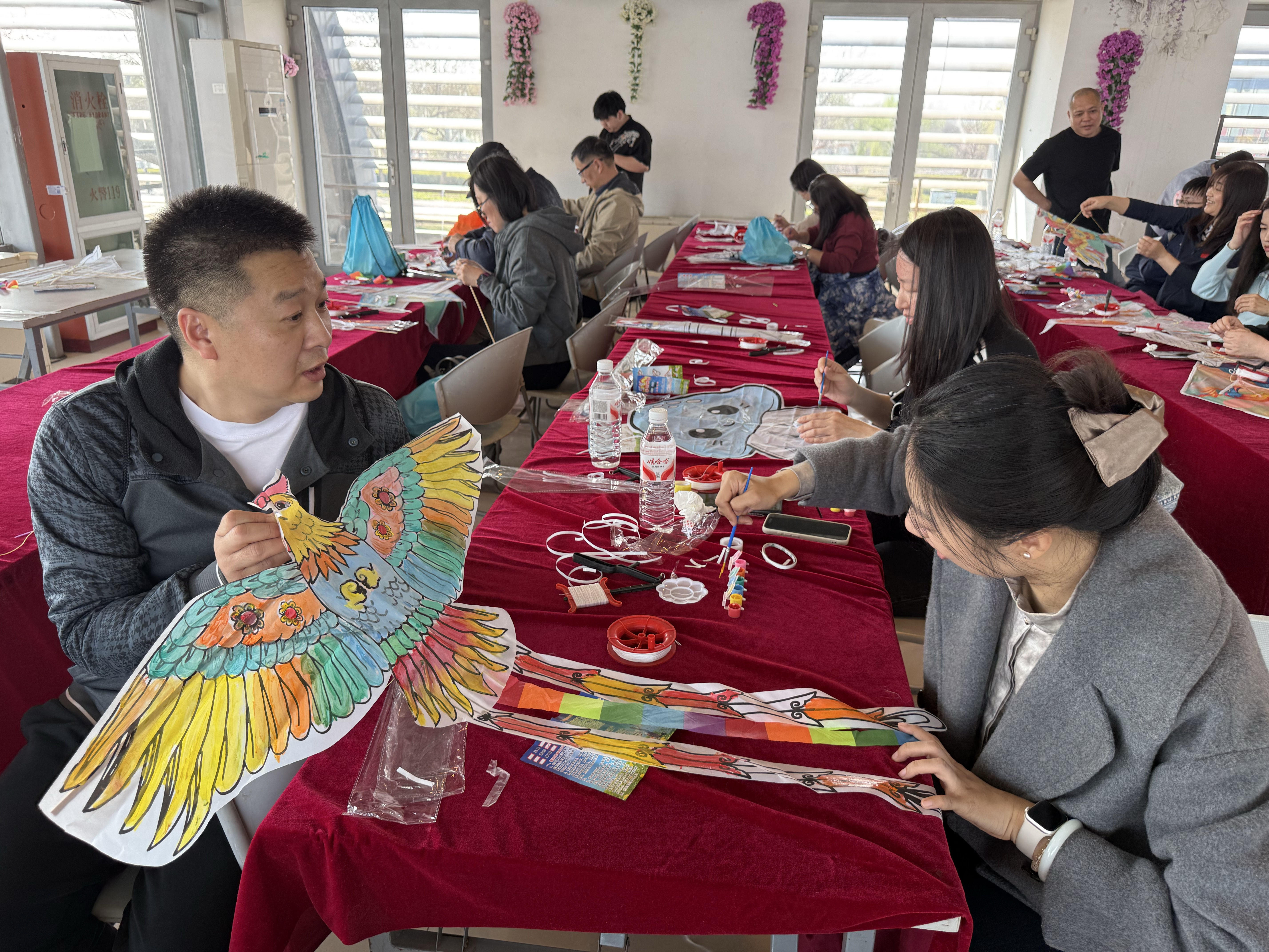 健步走环节中,领队带领全员开展动态拉伸热身,为后续活动做好充分准备。职工们步伐铿锵、口号激昂,向着目标稳步前行,坚实的脚步彰显出同心聚力的精神风貌,充分展现出大龙人积极向上、勇毅前行的奋进姿态。风筝DIY环节中,专业教师细致讲解风筝的历史渊源、文化寓意与制作技巧,职工们尽情发挥巧思创意,亲手勾勒绘制专属风筝,工作人员全程在旁贴心协助,及时解决各类技术问题。自由放飞环节,五彩斑斓的风筝迎着春风翱翔蓝天,既承载着职工们对生活与事业的美好憧憬,也让大家在创意挥洒中释放了活力、舒展了身心。